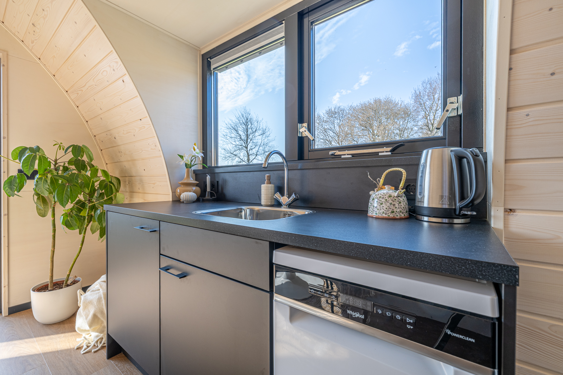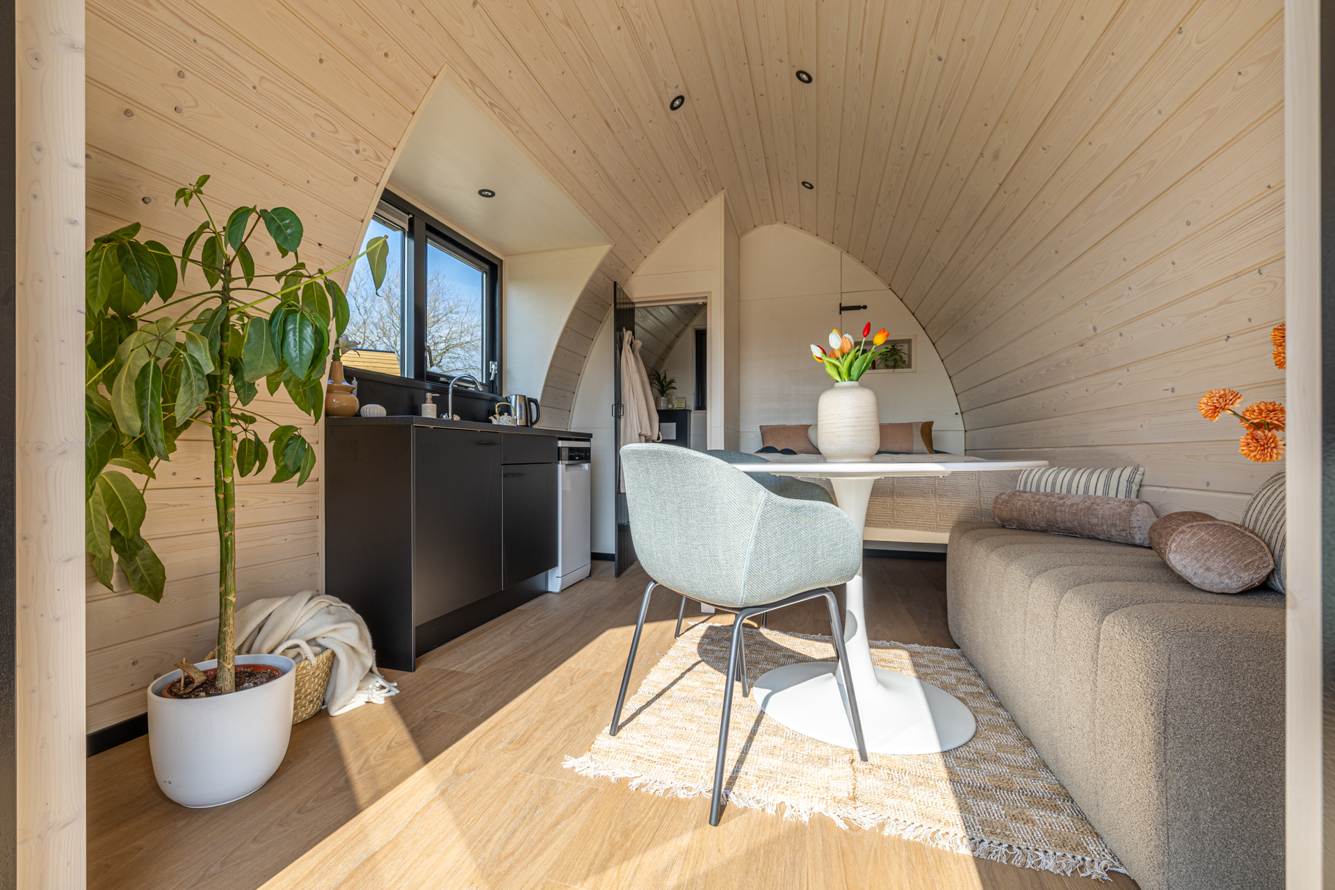 POD 023 is een doorontwikkeling vna de POD 021 – met een dakkapel waarin het keukenblok is geïntegreerd. Dit zorgt voor extra licht, een gevoel van ruimte en een nog hogere gastbeleving. Perfect voor B&B’s, hotels en short-stay accommodaties die het verschil willen maken.