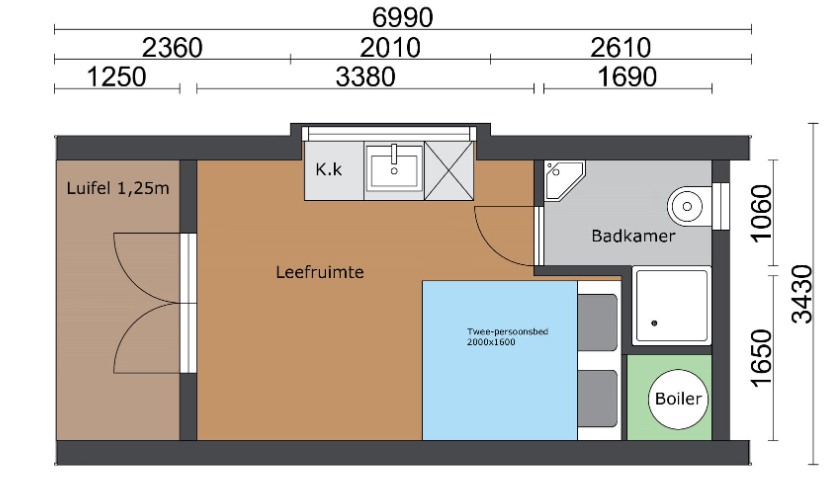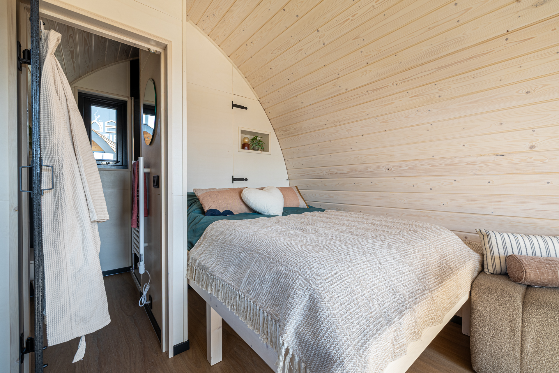 Ook in deze Pod is er ruimte voor een bed van 160x200cm.