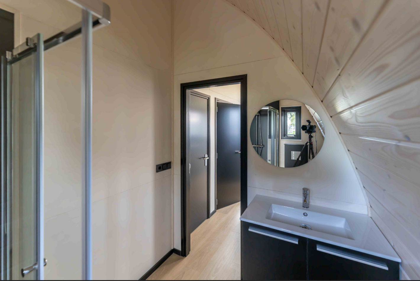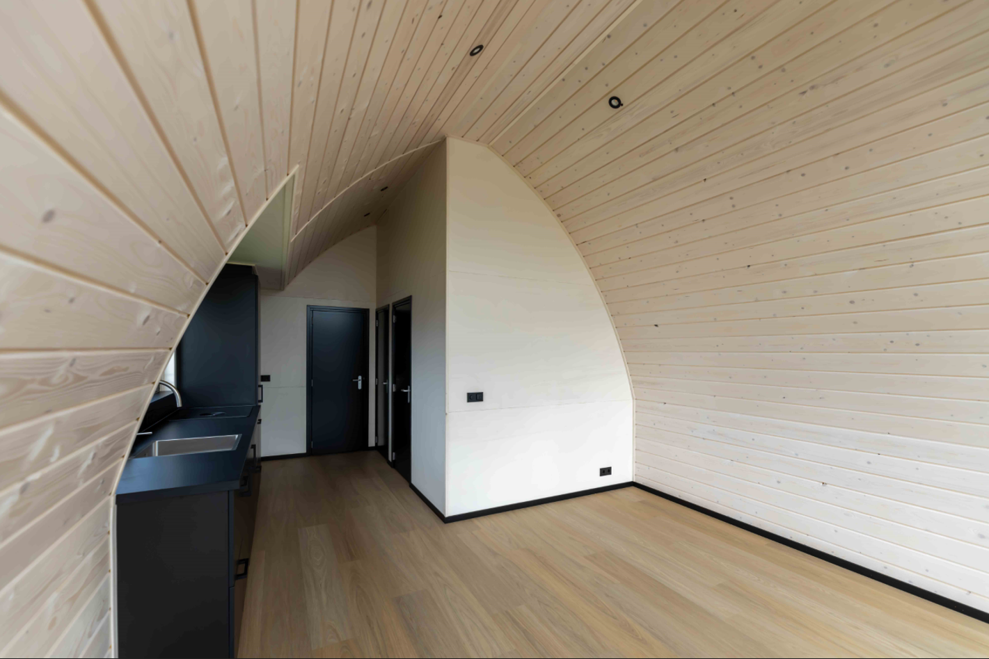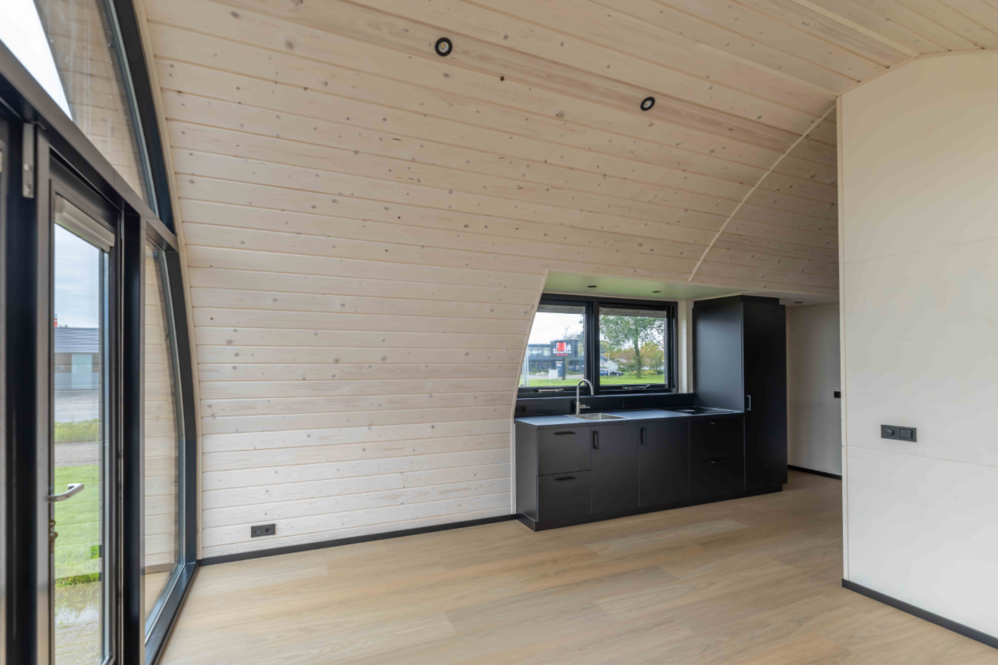 De POD 050 biedt extra ruimte en comfort voor langer verblijf. De royale indeling, hoge plafonds en grote raampartijen geven dit model een open, lichte uitstraling.
